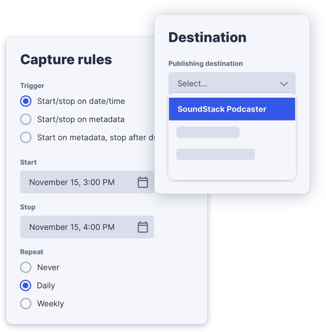Pick capture rules that work best for you – by metadata, duration, or date and time